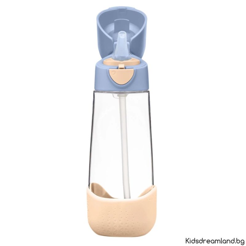 Изработена от лек и издръжлив , бутилката е снабдена със силиконова сламка с клапан, която предотвратява разливане и улеснява пиенето. Ергономичният дизайн и гъвкавата дръжка я правят удобна и за малки, и за големи ръце.