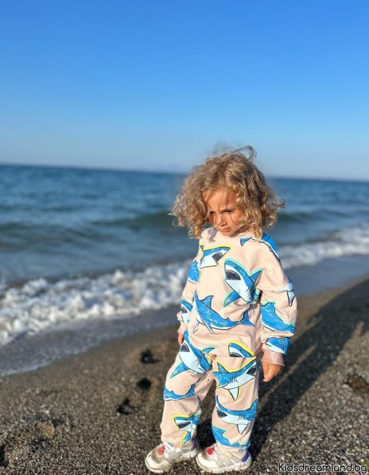 детски комплект момиче, комплект дълъг ръкав, комплект Sharks момиче, син комплект момиче, комплект с акули, моден комплект за момиче, спортен комплект момиче, удобен комплект дълъг ръкав, комплект за училище момиче, ежедневен комплект момиче, детски дрехи онлайн