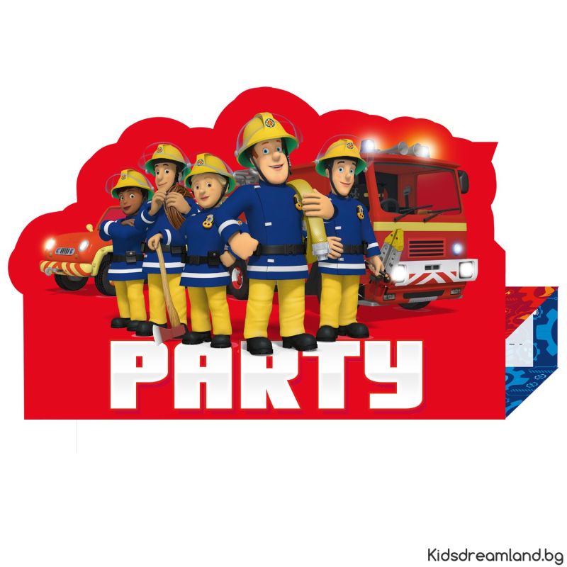 Покани за стендъп парти с пожарникаря Сам - пакет от 8 броя