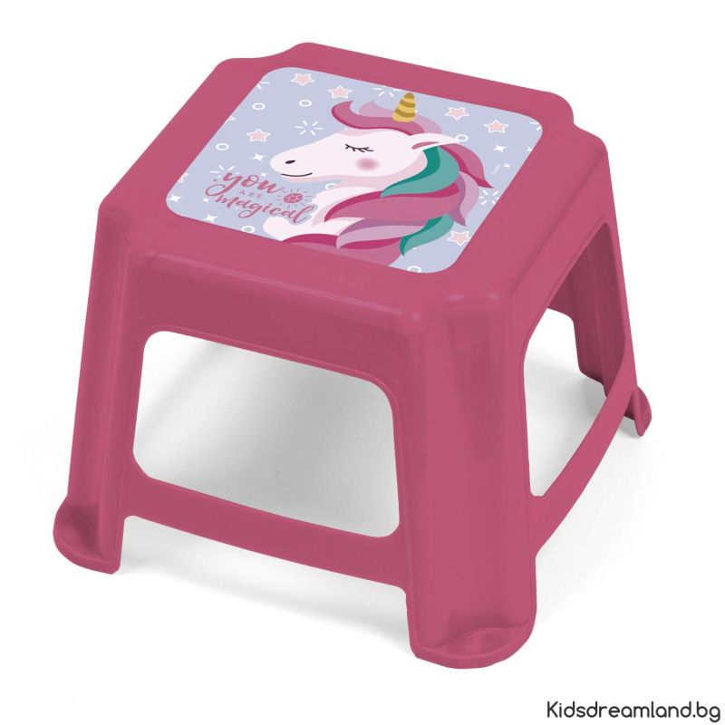 - 👩 Детско табуретка в червено, декорирана с любимите им измислени герои, като тази от Unicorn, многофункционална и практична за дома. Ще бъде любимото ви място за сядане и достигане до предмети!