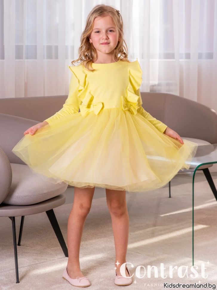 Рокличка с къдри и тюл в жълто