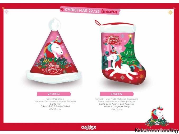 Създайте вълшебно празнично настроение с този очарователен коледен комплект! Включва, коледна шапка и чорап за подаръци – идеални за декорация на дома, детската стая или елхата.