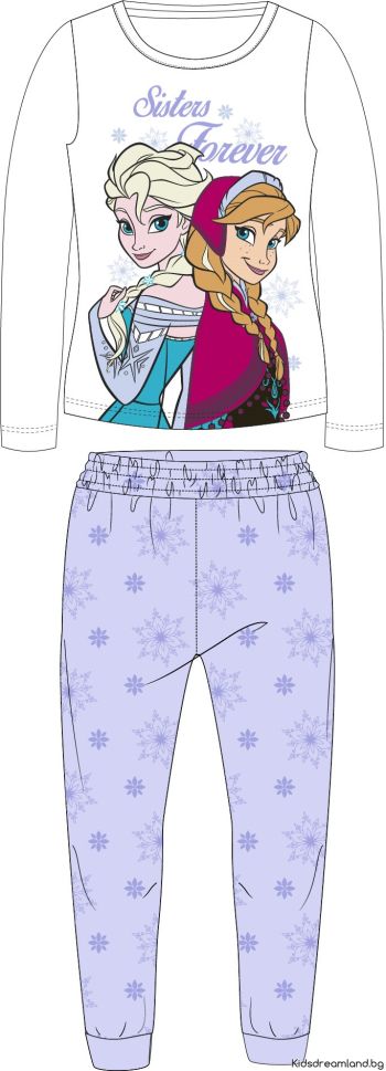 Пижамата за момиче е изработена от висококачествен памук. Блузата е с нежен принт с изображение от популярни приказки. Панталон с не стягаща еластична лента на талията. Всичко е свободно и удобно за спане.