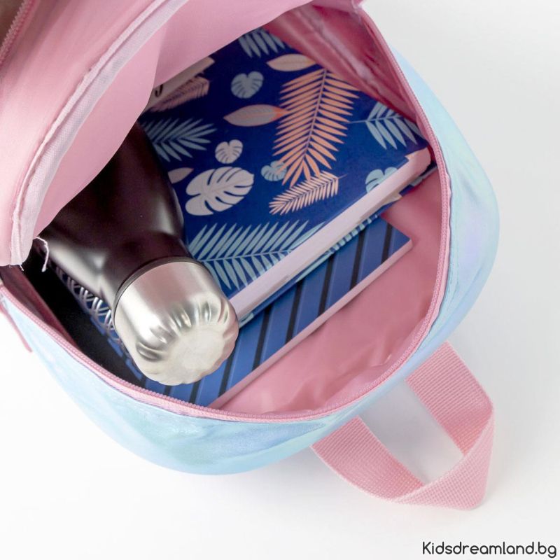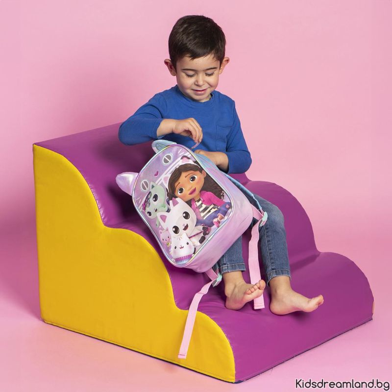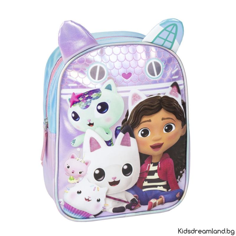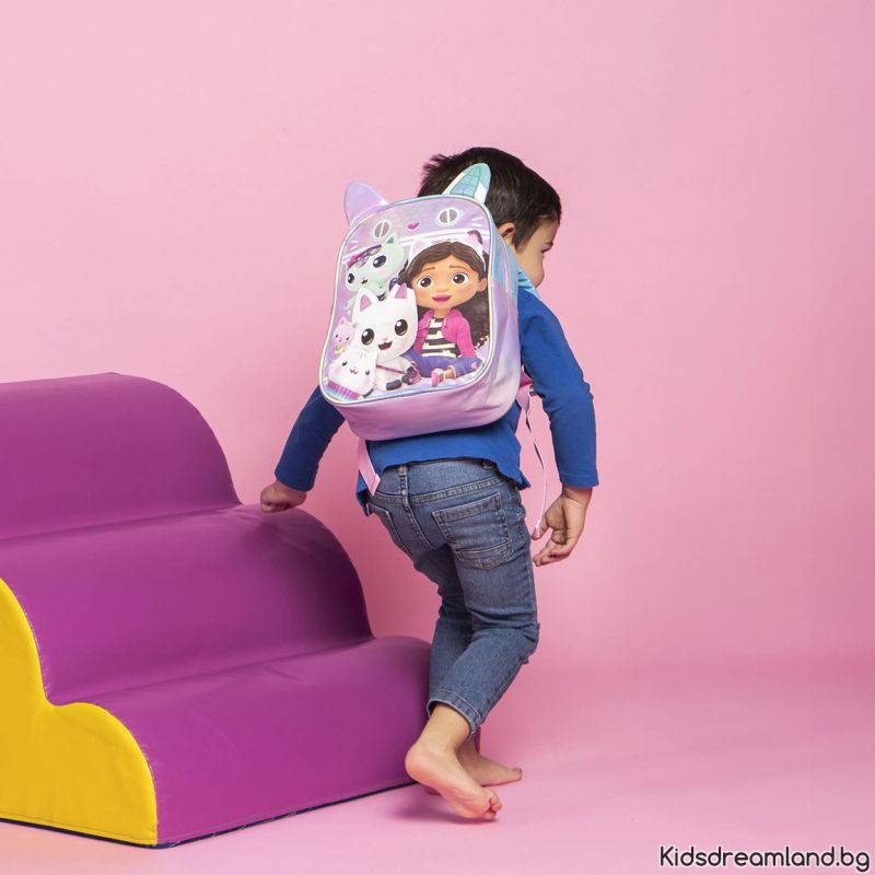 Раницата е щампована с дизайн на Gabby´s Dollhouse . Снабдена е с основно отделение с цип. Подплатените регулируеми презрамки и гръб създават допълнителен комфорт на ученика при продължително носене.