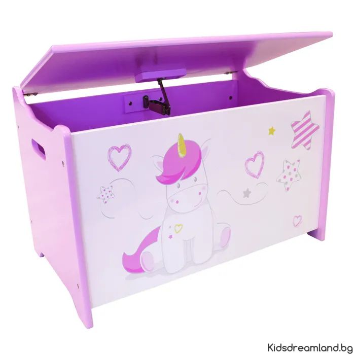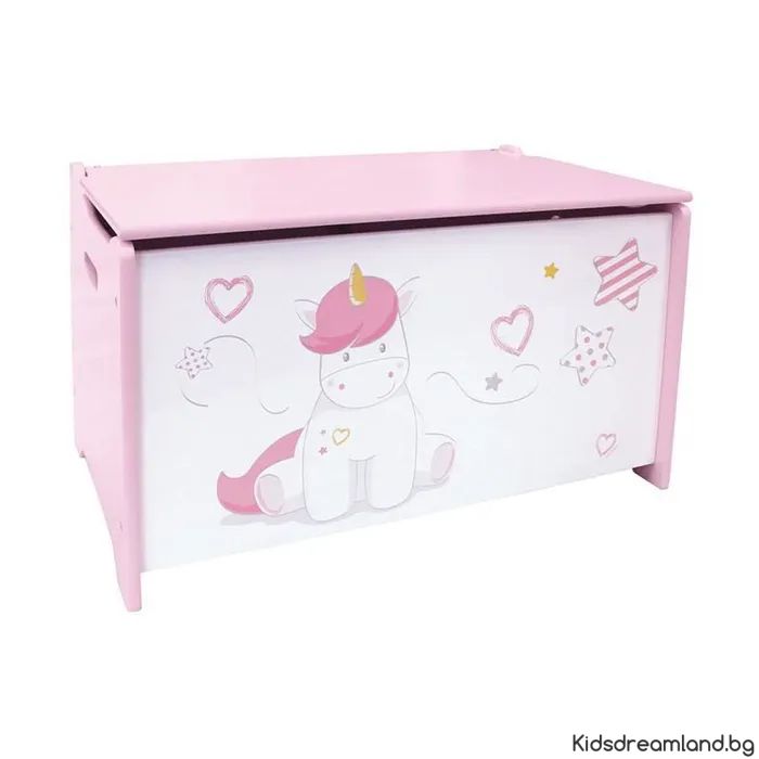 Дървена кутия за играчки еднорог за деца