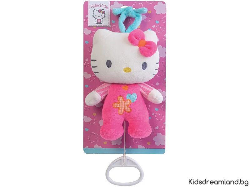 Hello Kitty Музикално бебе. Хубава музикална играчка за гушкане от Hello Kitty. Издърпайте кабела и се чува тиха музика. Перфектен за кошара или детска количка. Музикалната играчка за гушкане може да се завърже в горната си част с шнур. Също така е хубаво да се даде като подарък за парти на бебе или като подарък за бременни.