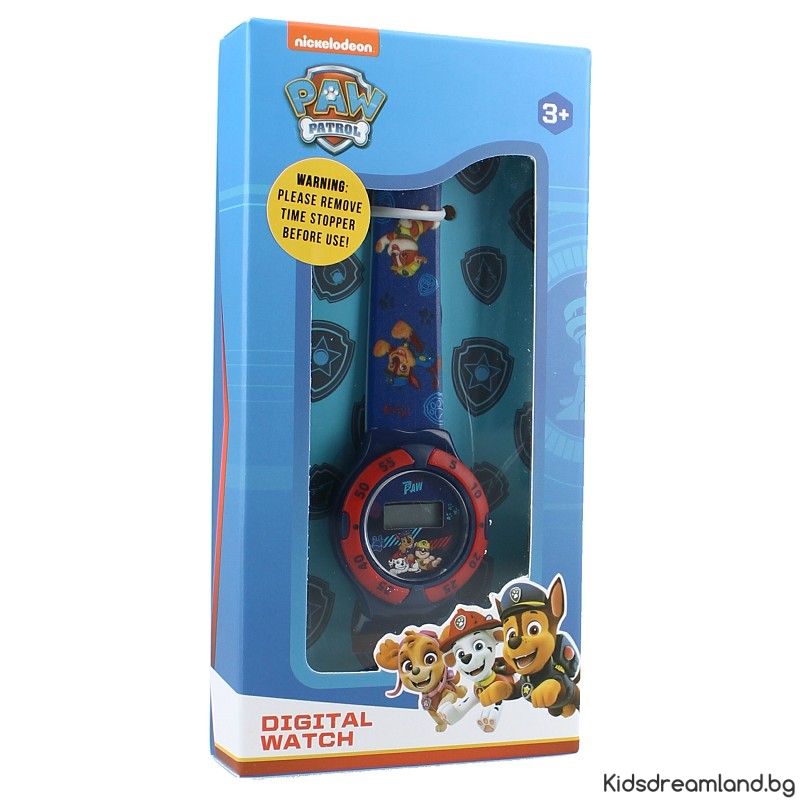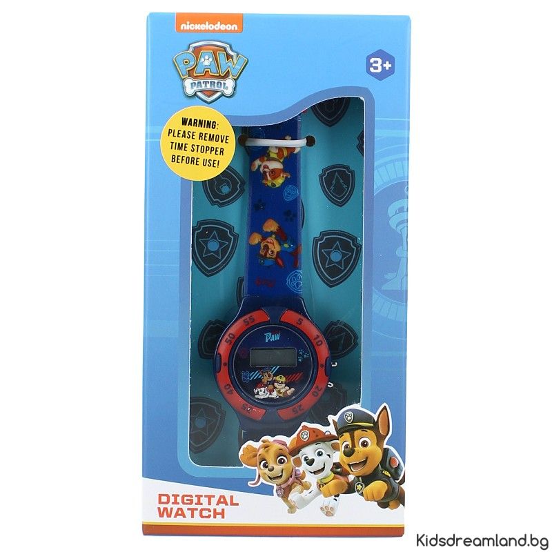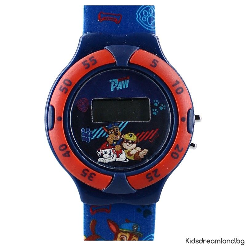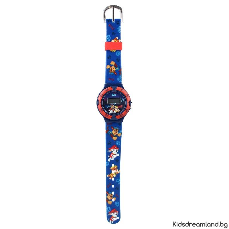 Този син часовник разполага с PVC каишка и дигитален циферблат с щампа на смелите четириноги приятели Чейс, Маршал и Ръбъл.