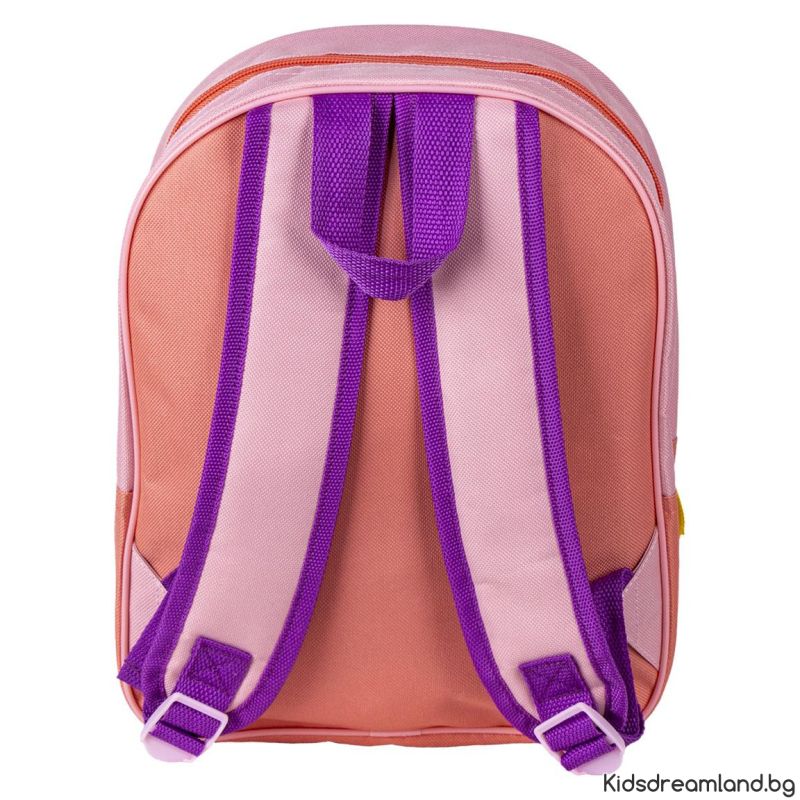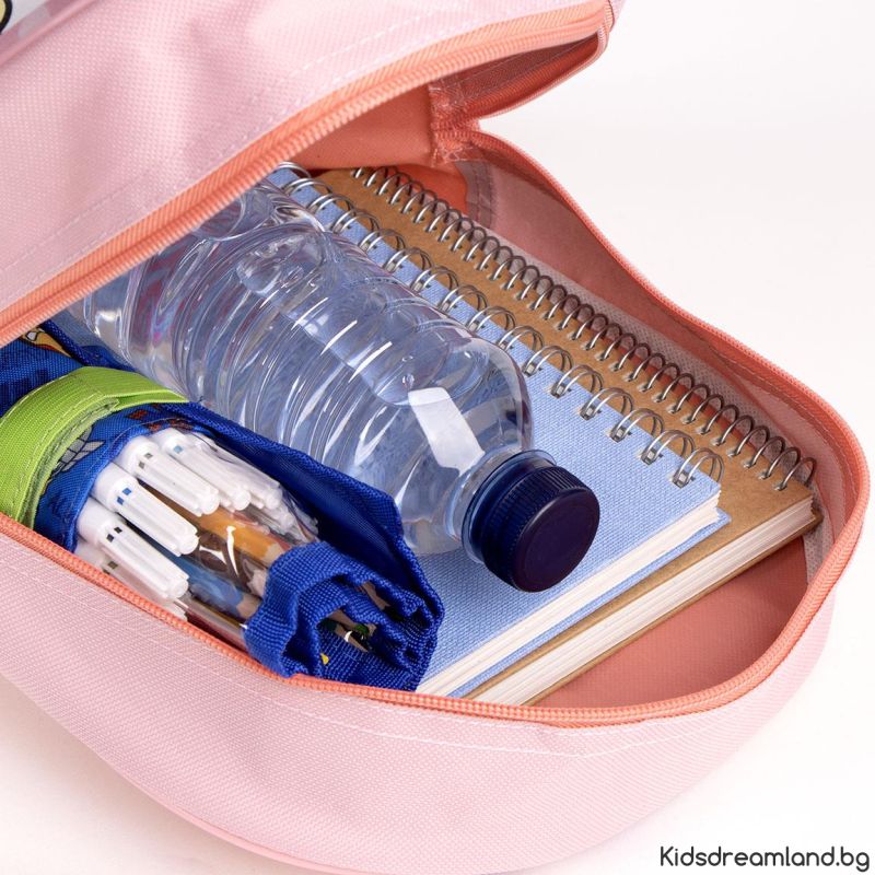 Раницата е щампована с дизайн на любим герой . Снабдена е с основно отделение с цип и регулируеми презрамки