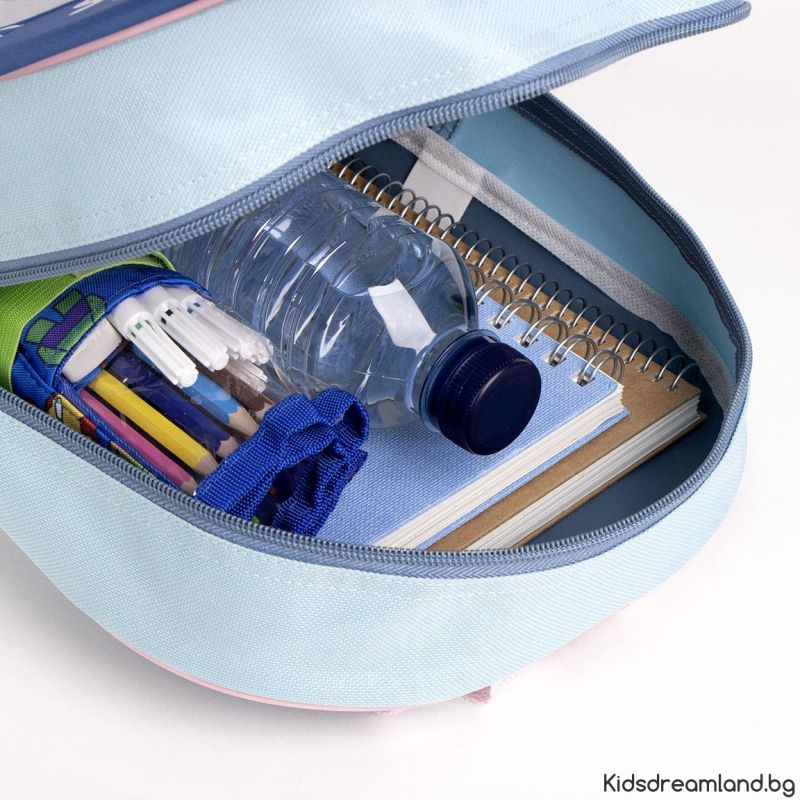 Раницата е щампована с дизайн на любим герой . Снабдена е с основно отделение с цип и регулируеми презрамки
