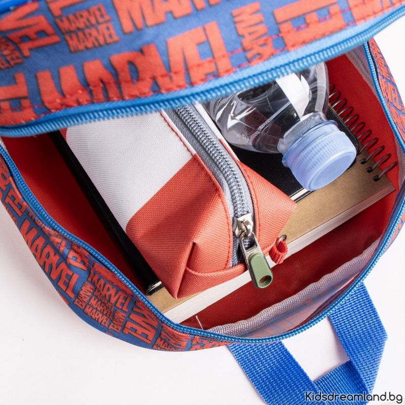 Раницата е щампована с дизайн на любим герой . Снабдена е с основно отделение с цип и регулируеми презрамки