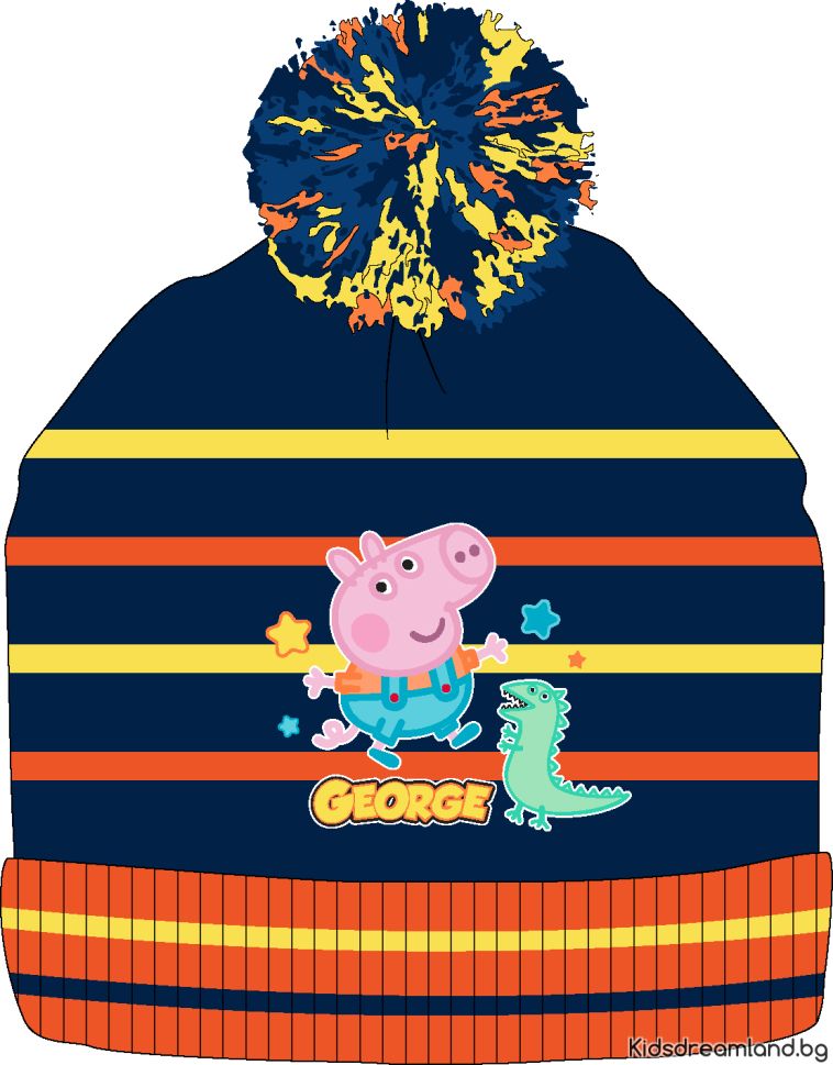 Шапка с лика на George, по-малкият брат на Peppa Pig, е идеалният избор за зимните дни. Изработена от топла, приятна на допир материя, осигурява ефективна защита от студ и вятър. Помпонът в горната част и цветните ивици му придават весел характер, който със сигурност ще се хареса на феновете на малкия Джордж. Мотивът със сладък динозавър придава на шапката уникален чар, превръщайки я в атрактивно допълнение към ежедневния стайлинг.