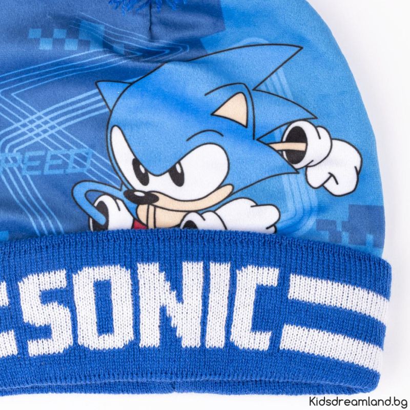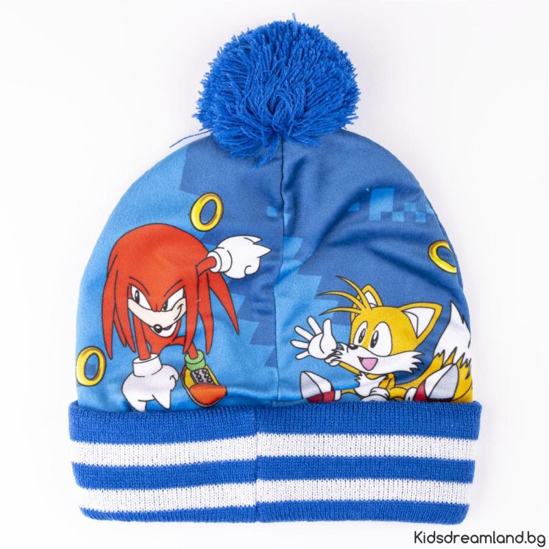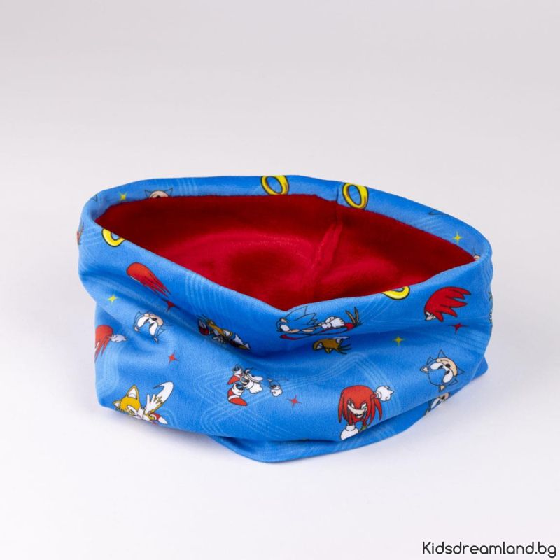 Комплект от зимни шапка, шал и ръкавици за деца с картинки на Sonic