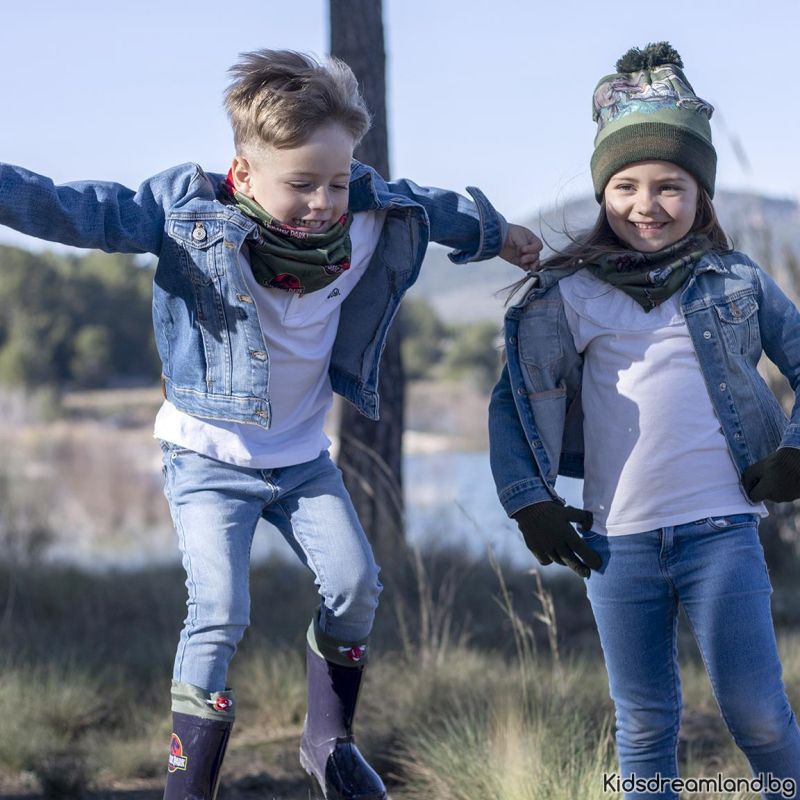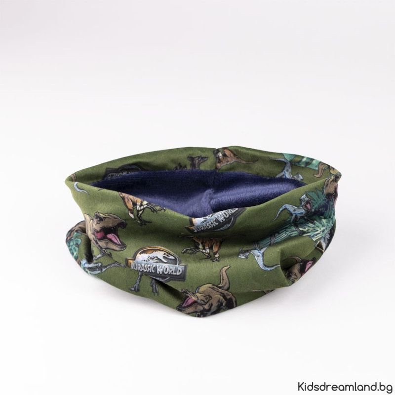 Комплект от зимни шапка, шал и ръкавици за деца с картинки на Jurassic world
