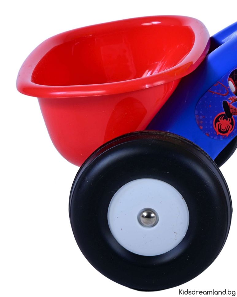Триколката в син цвят и с красиви изображения на Marvel Spidey. Триколката има кошница отпред и отзад, за да може вашето дете да вземе със себе си любимите си играчки.