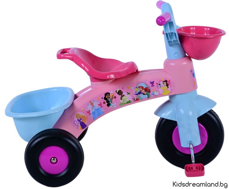 Триколката е в розов цвят и има красиви изображения на принцеси на Дисни. Триколката има кошница отпред и отзад, за да може вашето дете да вземе със себе си любимите си играчки. Подходяща е за деца между 1 и 3 години и е с товароносимост 25 кг.