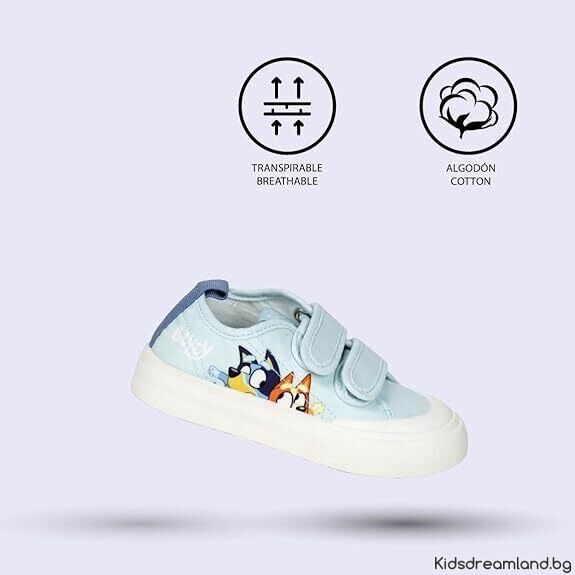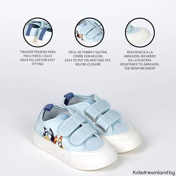 Детски гуменки Biuey в с забавен принт. Външна част-памучен текстил. Стелка-анатомична от памучен текстил. Хастар-памучен текстил. Закрепването е с две велкро лепки. Ходилото е олекотено и гъвкаво.