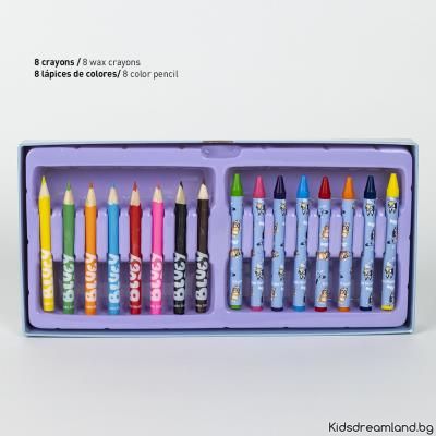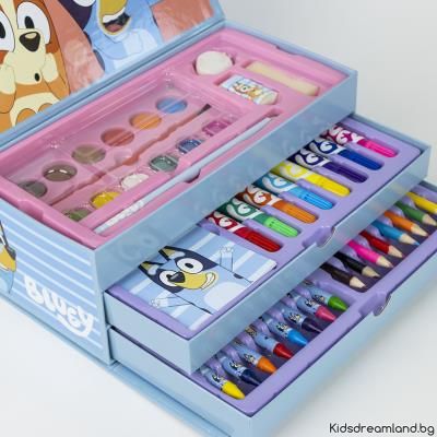 Bluey рисувателен комплект в куфарче на три нива. Много практичен комплект на три отделни нива.