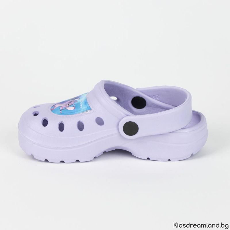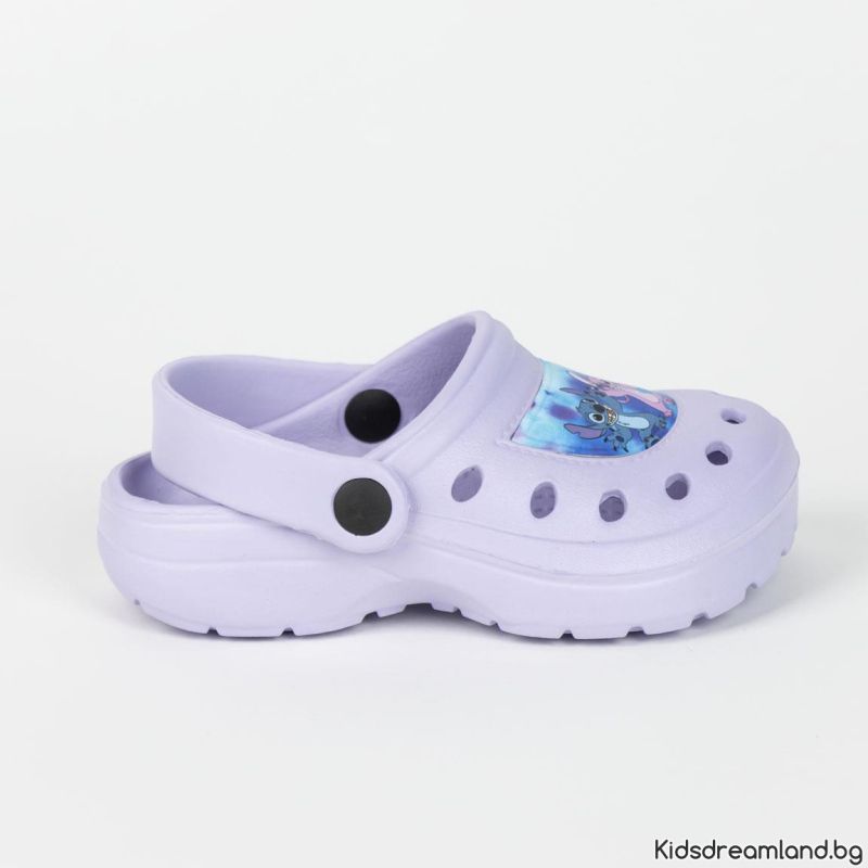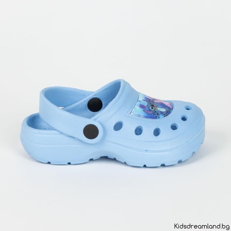 Детски пантофи Lilo & Stitch от DISNEY. Изработена е от мека синтетична материя, изключително лека, която предлага комфорт и почивка. Нехлъзгащата му подметка абсорбира ударите, създавайки усещане за мека стъпка и осигурява отлична анатомична опора на свода на стъпалото на малките почитатели на комфорта. Формата му е нормална.