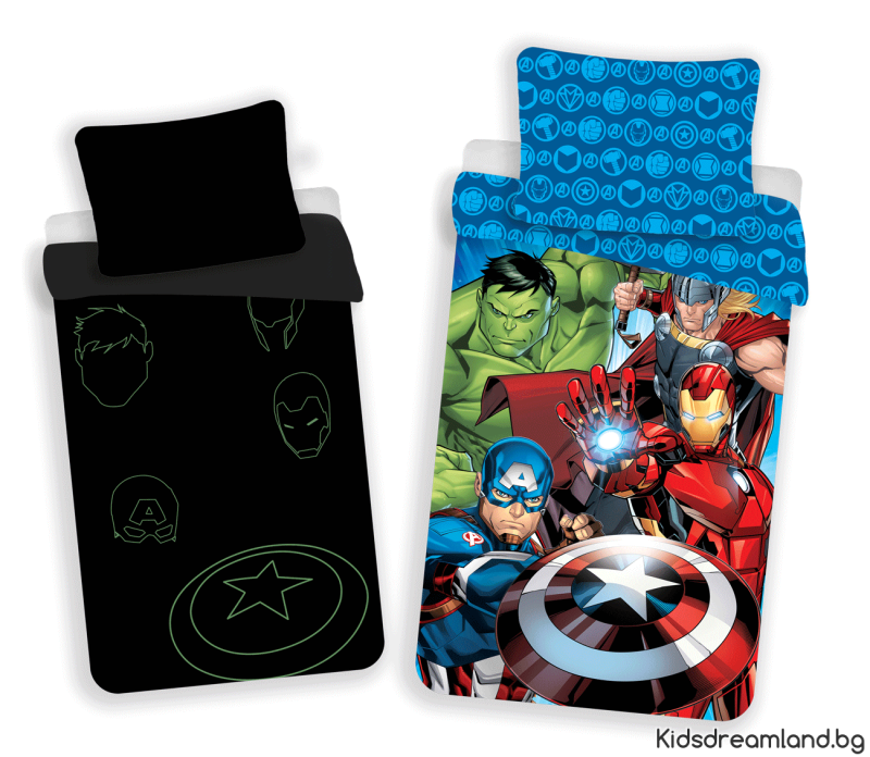 Спално бельо Licensed 140x200+70x90, Avengers, "Glow in the dark