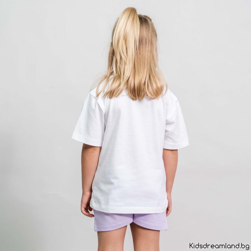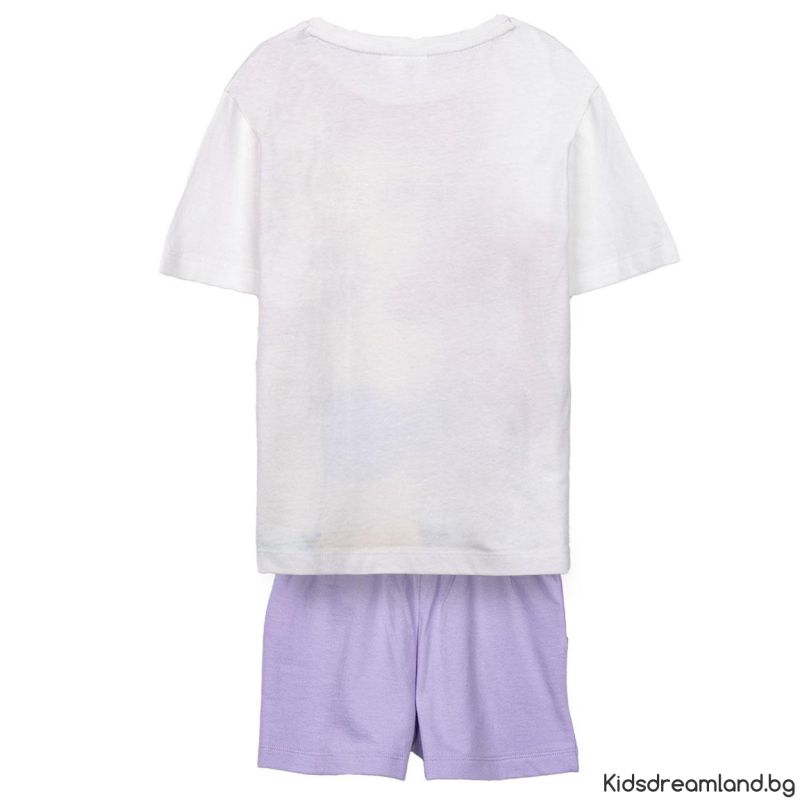• Мека материя • Тениска с цветна щампа • Къси панталони с еластична талия • Състав: 60% памук, 40% полиестер