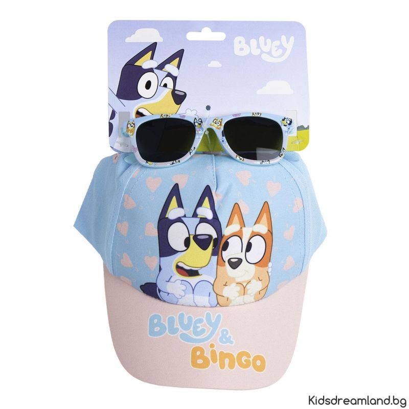 Детски комплект слънчеви очила и шапка с дизайн Bluey