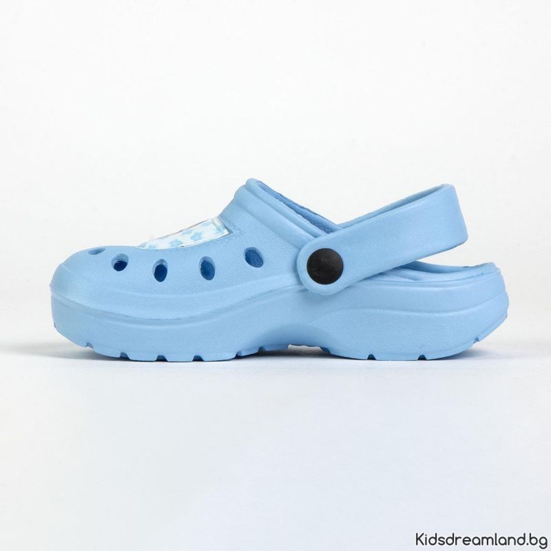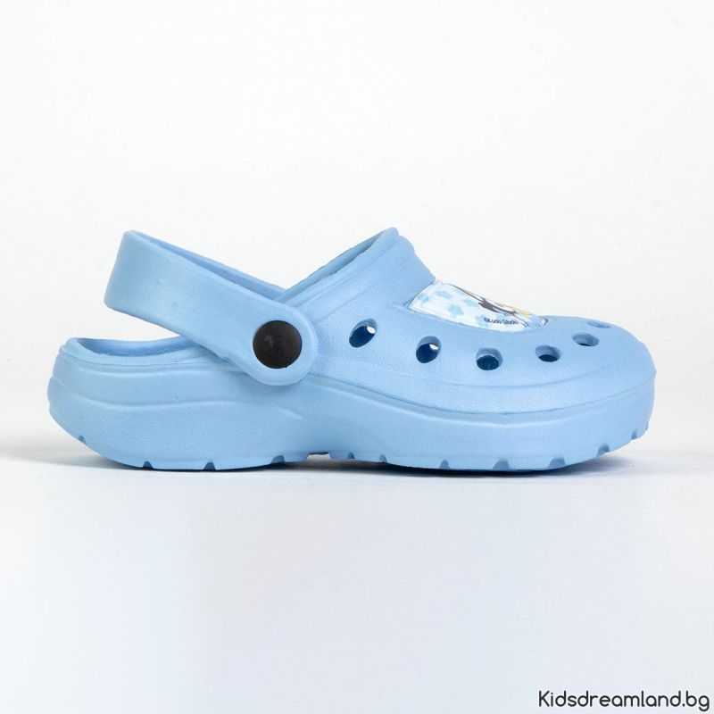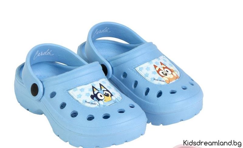 Детски пантофи Bluey. Изработена е от мека синтетична материя, изключително лека, която предлага комфорт и почивка. Нехлъзгащата му подметка абсорбира ударите, създавайки усещане за мека стъпка и осигурява отлична анатомична опора на свода на стъпалото на малките почитатели на комфорта. Формата му е нормална.
