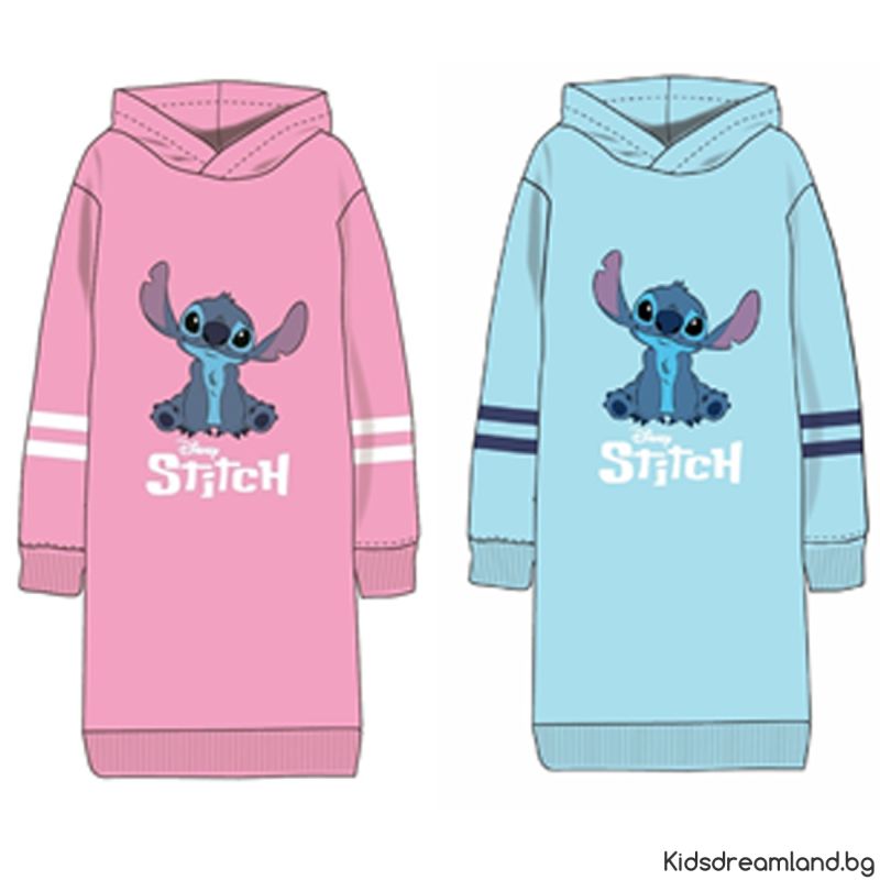 Невероятна детска суичър рокля в светло синьо или розово с любимите ни герои на Disney Лило и Стич за всеки ден, за да се чувстват комфортно и стилно на вашите момичета.
