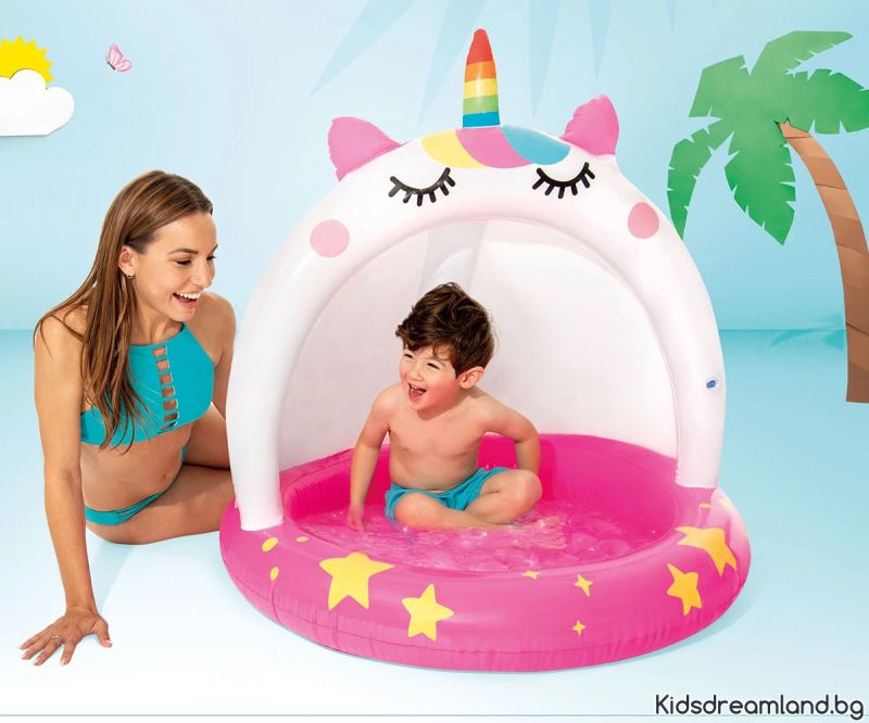 Детски надуваем басейн със сенник INTEX Unicorn