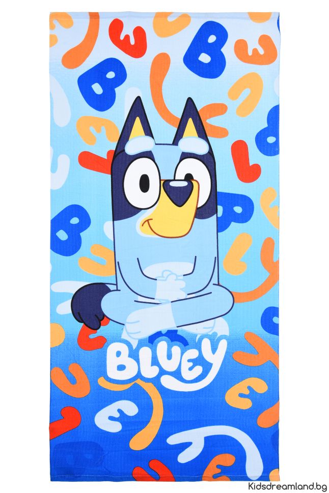 Тази плажна кърпа с дизайн на любимия анимационен герой Bluey е перфектният аксесоар за летни дни край морето или басейна.