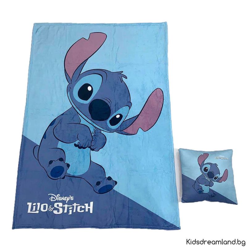 Потопете се в света на Disney с този очарователен комплект, включващ меко поларено одеяло и сладка възглавничка с героя Stitch!