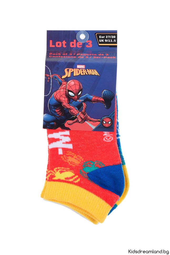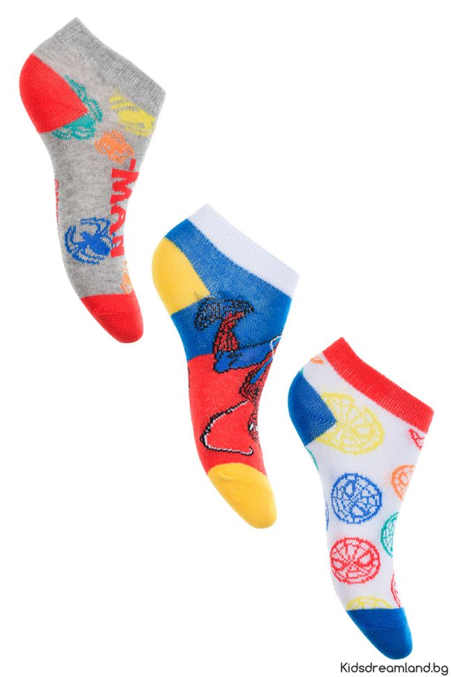 3 чифта къси чорапи с атрактивен дизайн на Spiderman