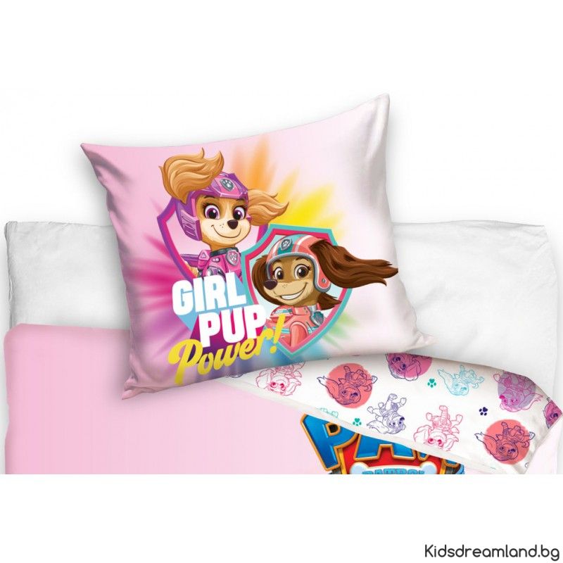 Подарете комфорт и усмивки на Вашето дете с този висококачествен спален комплект с любимите герои от Пес Патрул! Нежните розови тонове го правят идеален избор за момичета, а дишащата и мека материя от памук гарантира удобство през всички сезони.