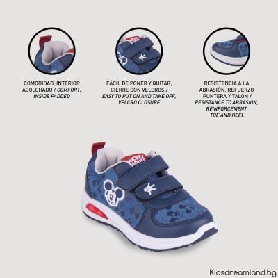 В тъмносин основен цвят и шарен дизайн по цялата повърхност, те се отличават със стилна визия и светлини, които се активират при движение.