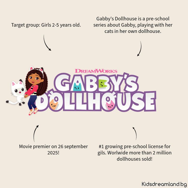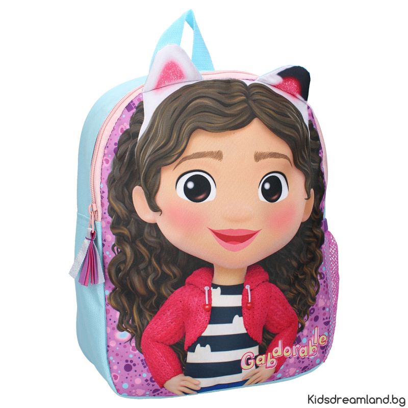 Очарователна детска раница с голям принт на Габи от популярния сериал Gabby’s Dollhouse.