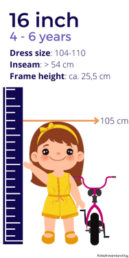 Размер: 16 инча – идеален за деца с ръст 104–110 см