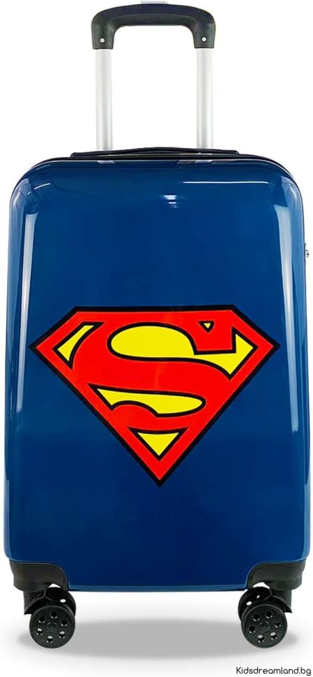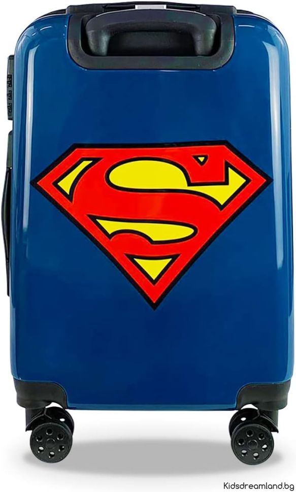 Количка с колела Superman. Пътуването никога не е било толкова забавно със забавните куфари Superman. Размер и тегло на детския куфар: вътре има 2 отделения с каишки. Специално отделение с цип за малки играчки позволява на децата да пътуват с този малък куфар. Багаж с 4 многопосочни колела, въртене на 360° за удобно преместване. Двоен цип за затваряне. Горна дръжка за носене и телескопична дръжка със заключваща дръжка. Странична дръжка и в допълнение, куфарът може да се заключи с 3-цифрен код. Марка: DC Comics Артикул: SUP 52 58 216 Цвят: Син Размери: Височина 55 см, Дълбочина 20 см, Ширина 40 см. Тегло: 2.60 кг. Материал: PC, ABS, подплата: 100% полиестер, чудесна идея за подарък.
