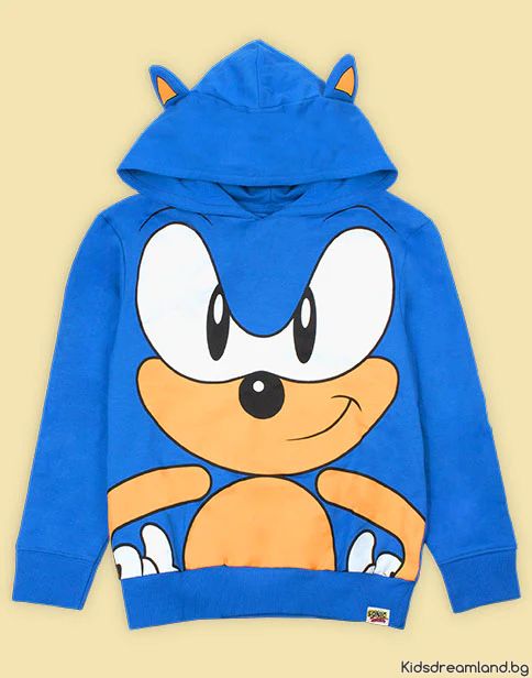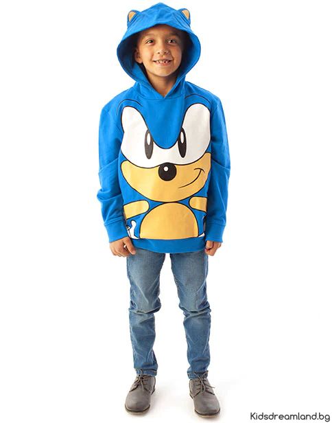 Детски Суичър Sonic the Hedgehog – Син, с Качулка, 100% Памук