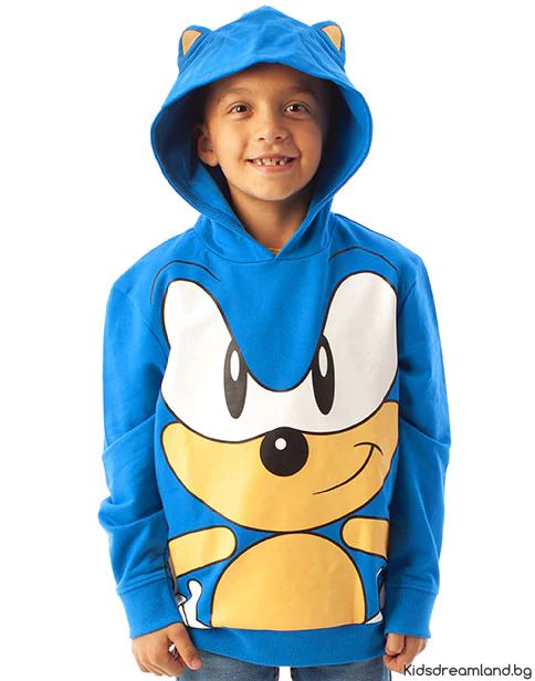 Готови за скорост? Този стилен детски суичър с качулка, вдъхновен от любимия таралеж Соник, ще зарадва всеки малък фен на видеоигрите и анимациите!