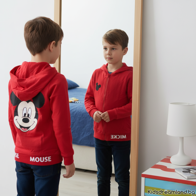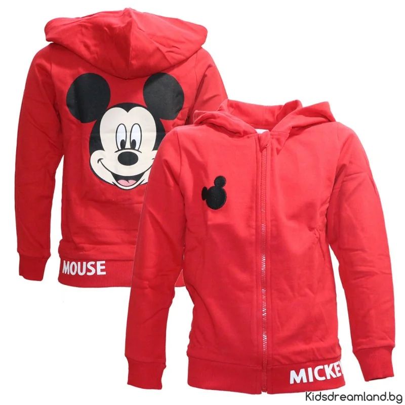 Суичър за Disney Момче Mickey Mouse – Червен, с Качулка и Цип