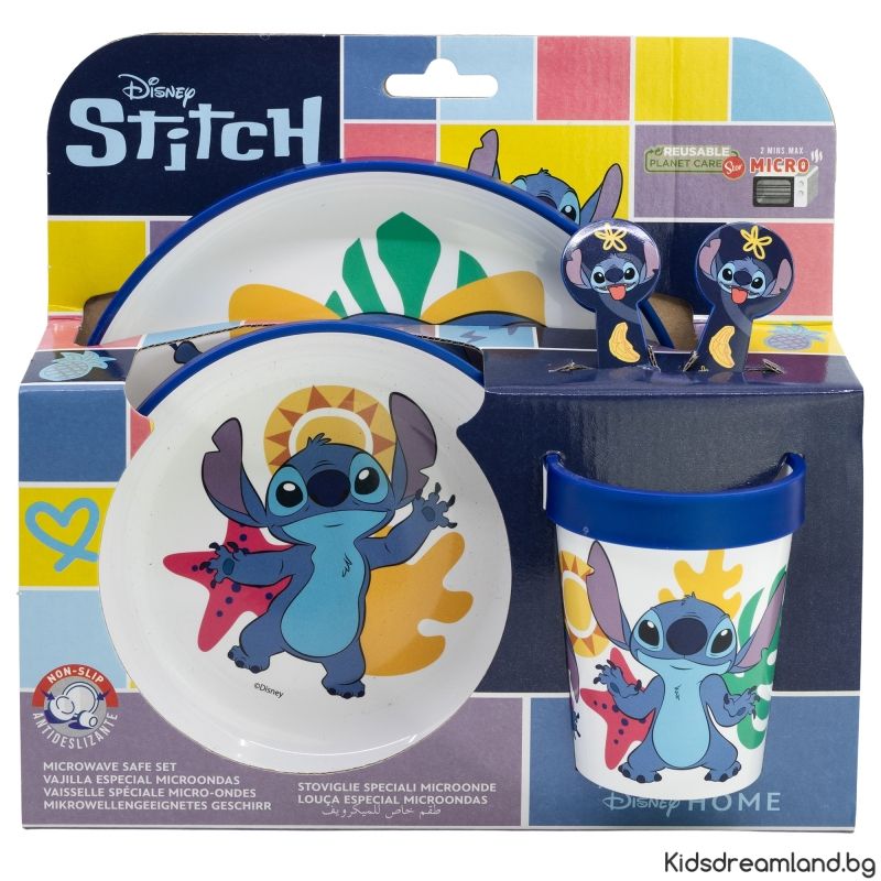 Детски комплект за хранене "Stitch" – 5 части с неплъзгаща се основа
