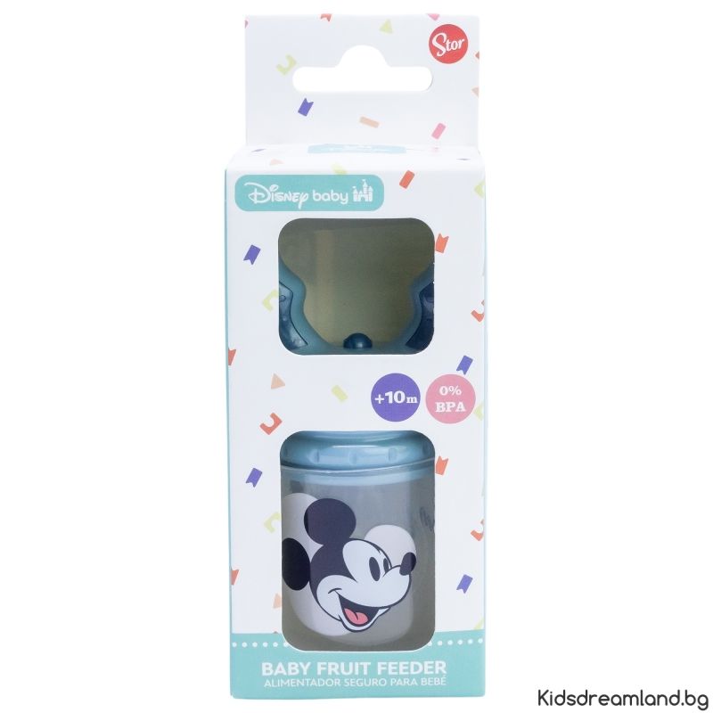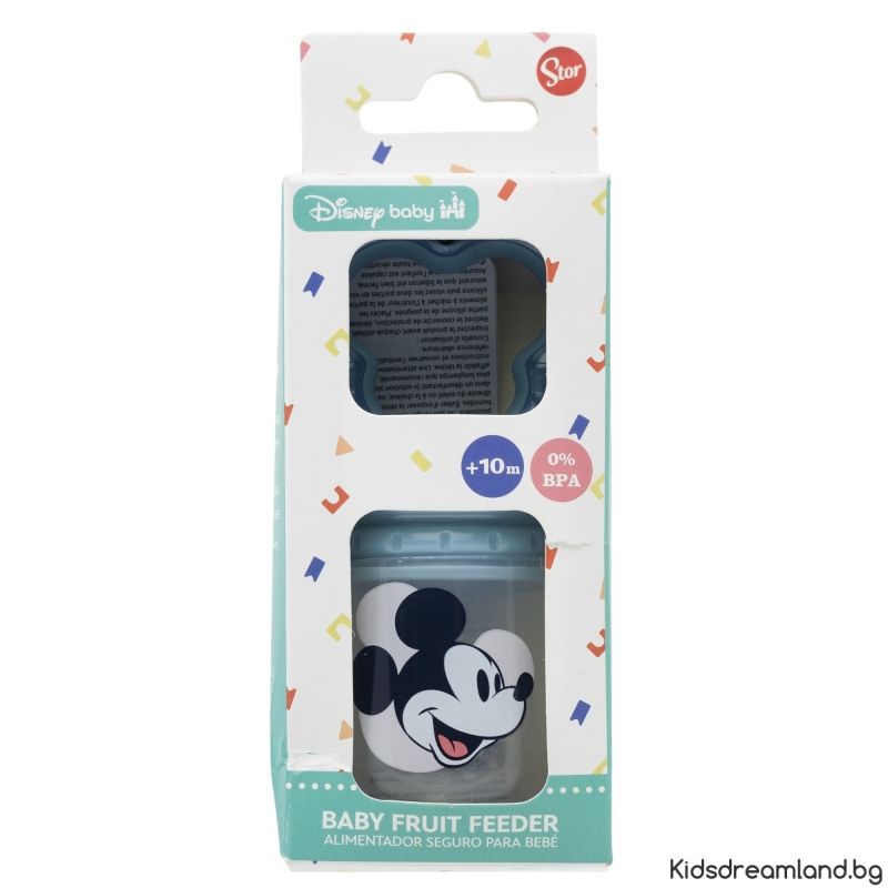 Хранилката против задавяне с дизайн на Мики Маус е идеалният начин бебето ви безопасно да открива вкуса на плодове, зеленчуци, каша и други меки храни.