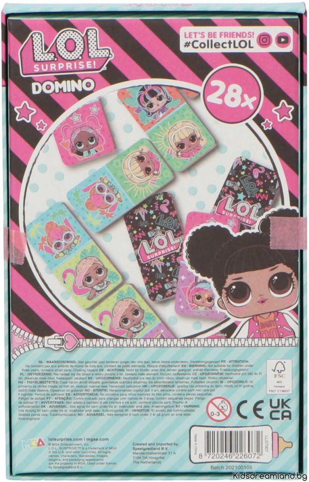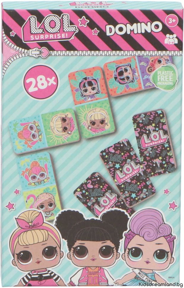 Класическата игра на домино с визията на LOL Surprise! ще донесе радост и развлечение за малки и големи. Комплектът съдържа 28 части, украсени с цветни и забавни изображения на LOL кукли.
