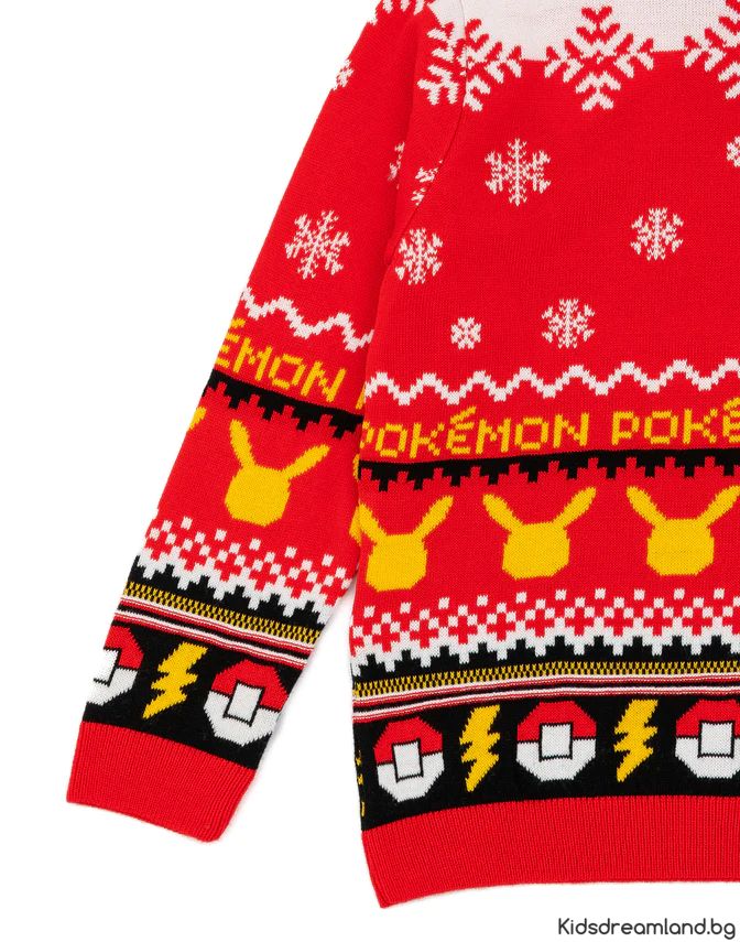 Добави електрически заряд към празничната си визия с този коледен пуловер с Pikachu – идеален за феновете на Pokémon от всяка възраст!