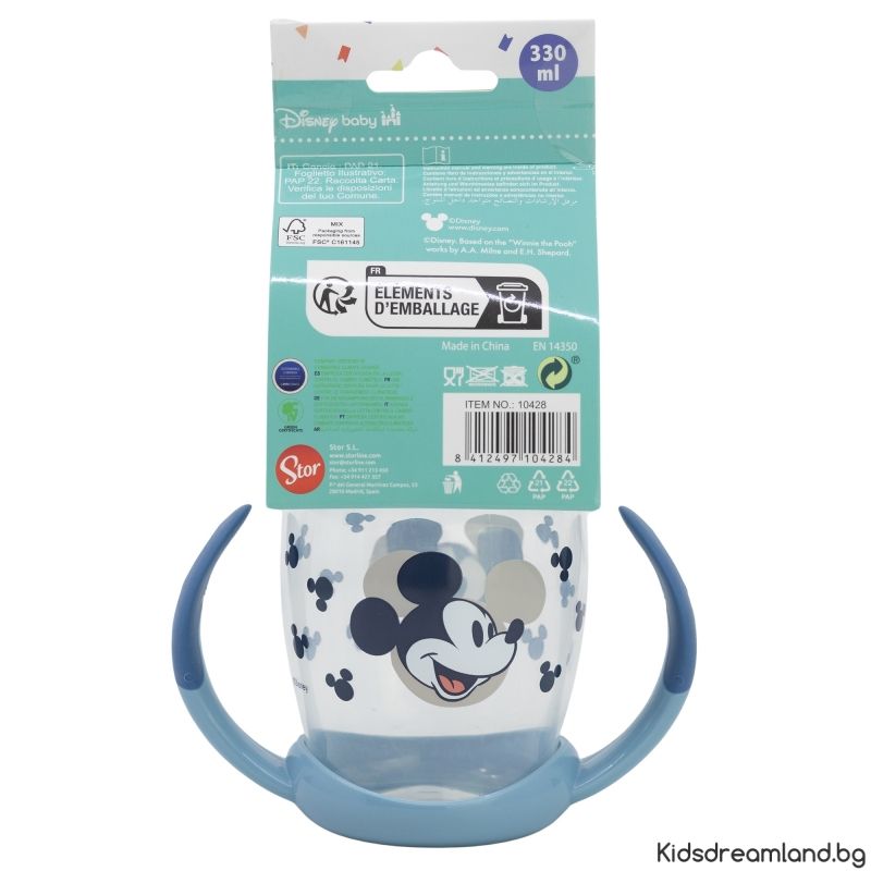 С тази цветна и забавна чаша с образа на любимия герой Мики Маус, всяко дете ще се усмихва с удоволствие при всяка глътка! Подходяща за прехода от шише към чаша, тя е удобна, сигурна и практична.