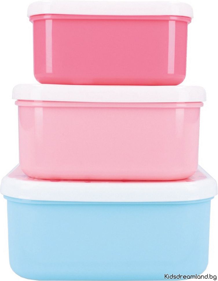3 в 1 дизайн – три контейнера в различни цветове (розов, син и тъмно розов)