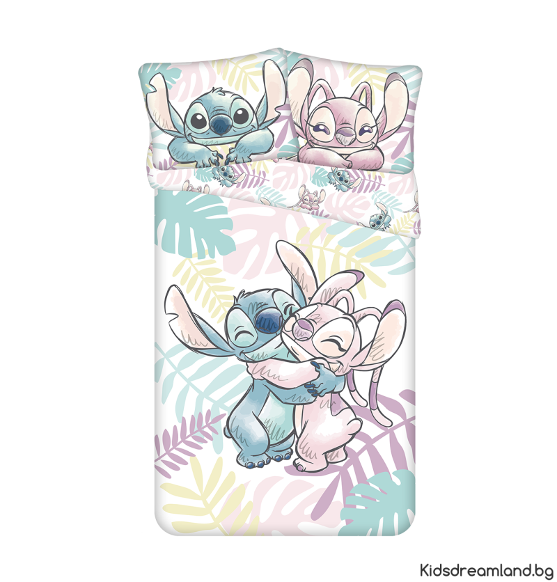 Спален комплект с размери 140 х 200 см + 70 х 50 см. Спалното бельо е изработено от висококачествен 100% памук и се затваря с цип както на възглавницата, така и на завивката. Оригинално спално бельо, което ще се превърне в идеално допълнение към всяка стая. Спалното бельо е за деца, но и за възрастни, които обичат Stitch Детското памучно спално бельо се характеризира с дълъг живот и запазване на цвета дори след много пранета.