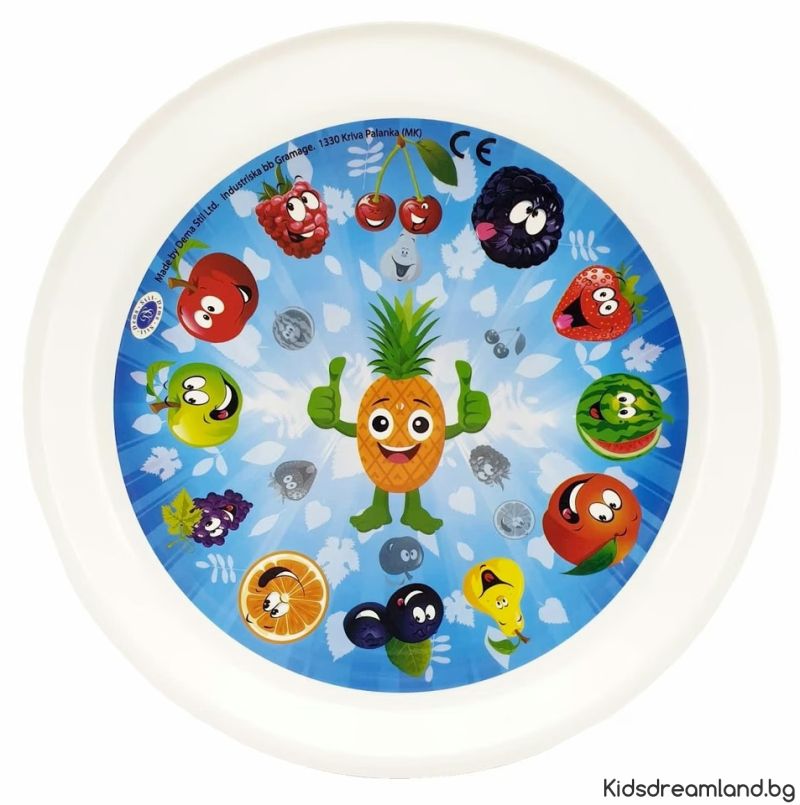 Добавете свежест и цвят към всяко хранене с тази очарователна детска чиния с дизайн на Плодчетата! Идеална за малки деца, тя съчетава практичност и забавление – подходяща е както за топла, така и за студена храна.